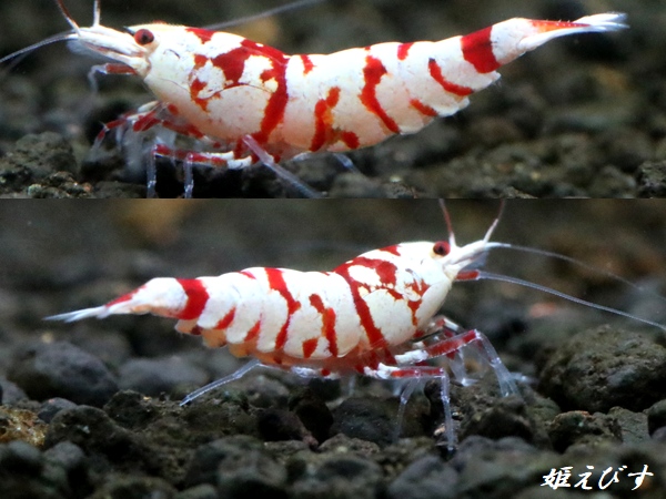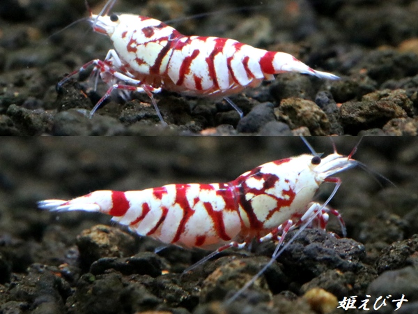 掲載画像1枚目が出品個体1、サイズは18〜20mm程度、抱卵♀個体です。